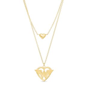 HeartwithLogoandMiniPuffHeartDoubleStrandNecklacein10KGold-21.5″